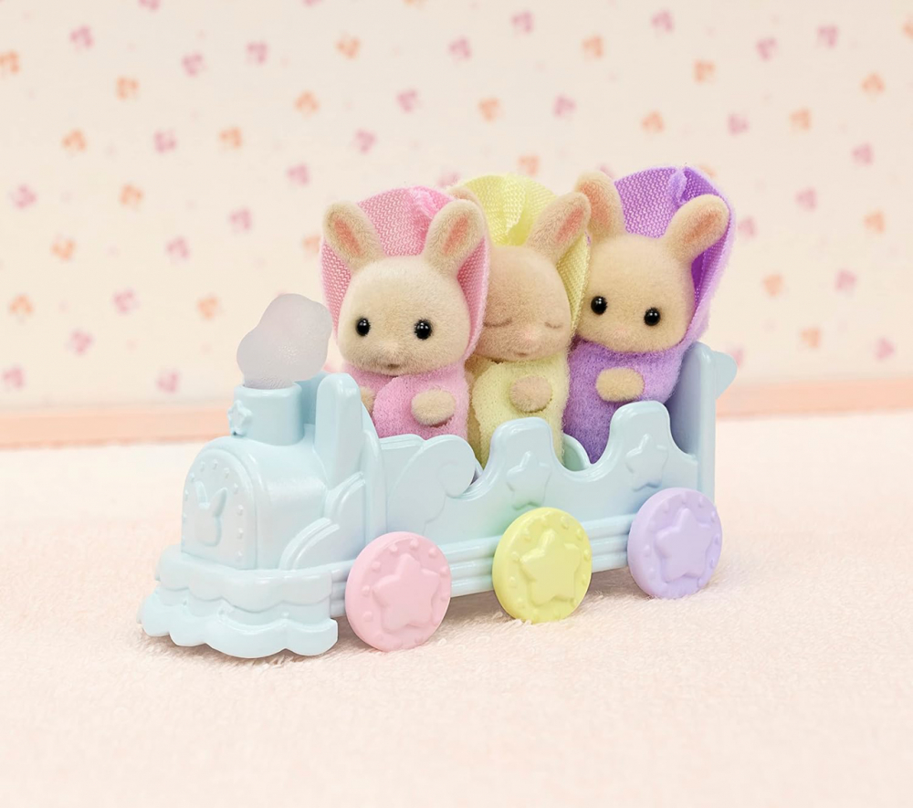 Include un trenulet în care tripleții se pot plimba și o mulțime de jucării și accesorii pentru baie.