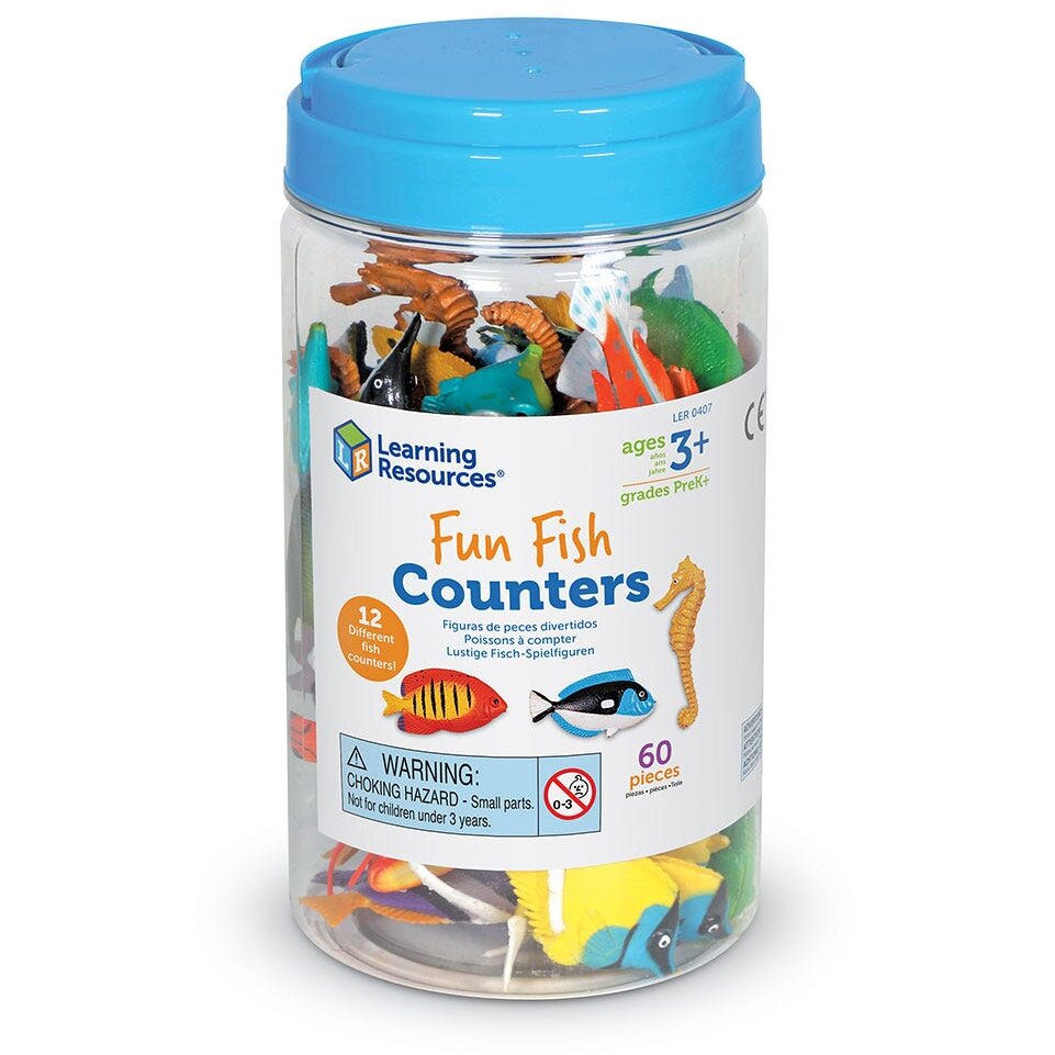 -setul este ideal pentru activitati de sortat, numarat, recunoastere a diferitilor pesti si jocuri de rol pline de imaginatie