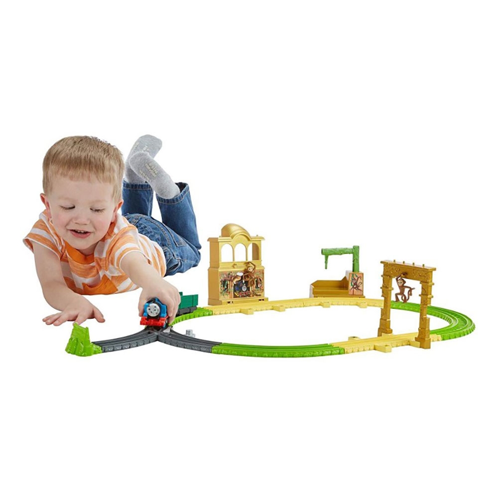 Set Fisher Price by Mattel Thomas and Friends Monkey Palace cu sina, vagoane si locomotiva motorizata