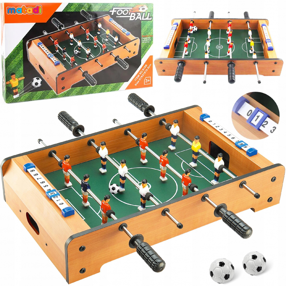 Un joc legendar pentru fiecare iubitor de fotbal Fotbal de masa din lemn XL de la MATADI Masa este realizata din materiale solide din lemn, cu accesorii colorate.