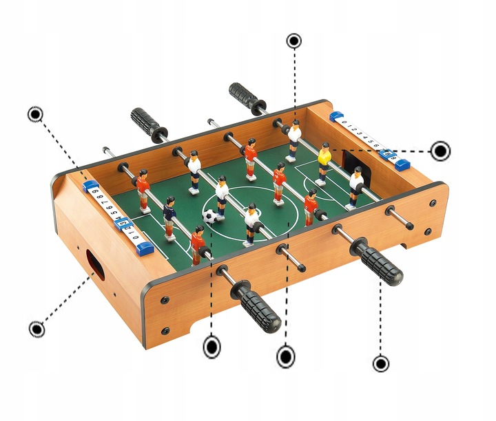 - Constructie stabila - 12 jucatori colorati - 2 bile - manere antiderapante - contor manual de goluri -