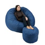 Set fotoliu puf king size otoman blue denim umplut cu fulgi de burete memory mix