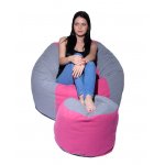 Set fotoliu puf pentru copii 5-16 ani matusalem otoman pink stripe umplut cu fulgi de burete memory mix