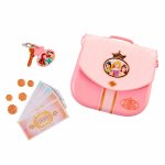 Include peste 15 articole de joaca: 1 poseta, 1 cheie, 1 breloc, 1 charm pentru cheie, 8 bacnote de jucarie si 5 monede de jucarie.