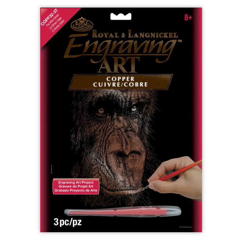 Setul gravura pe folie aramie Maimuta inteleapta este un set creativ care ofera o experienta unica de initiere in arta gravarii.