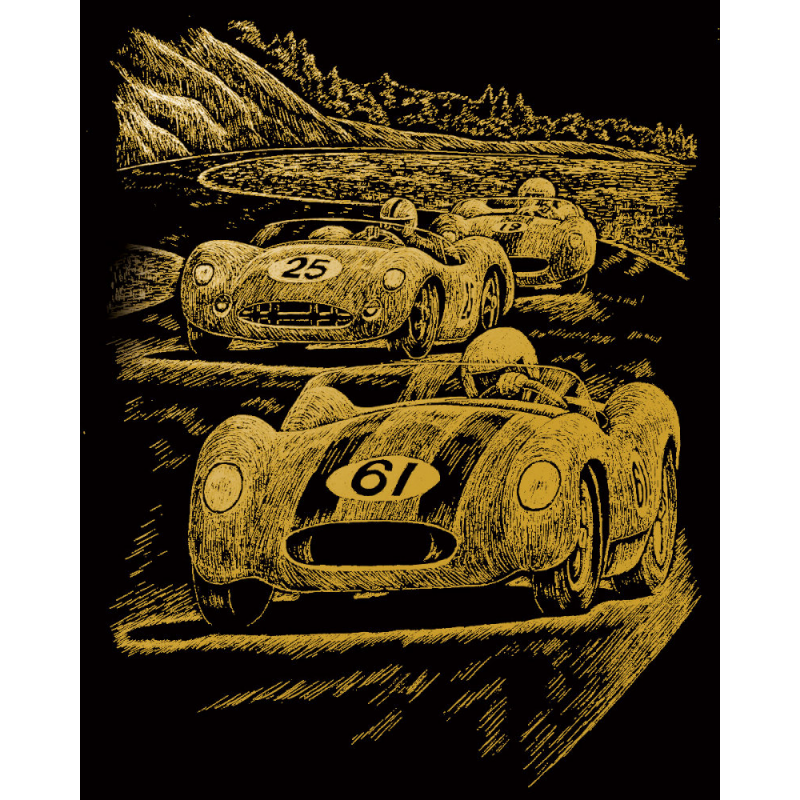 Setul gravura pe folie aurie Cursa nostalgica este un set creativ care ofera o experienta unica de initiere in arta gravarii. Utilizatorul va scrijeli pe o bucata de carton, in doua culori, cu un instrument special dand viata unor modele preconfigurate. Surpriza este lucrarea finala care devine unica atat prin tehnica cat si prin finetea si acuratetea executarii tabloului. Setul este destinat deopotriva copiilor si adultilor.