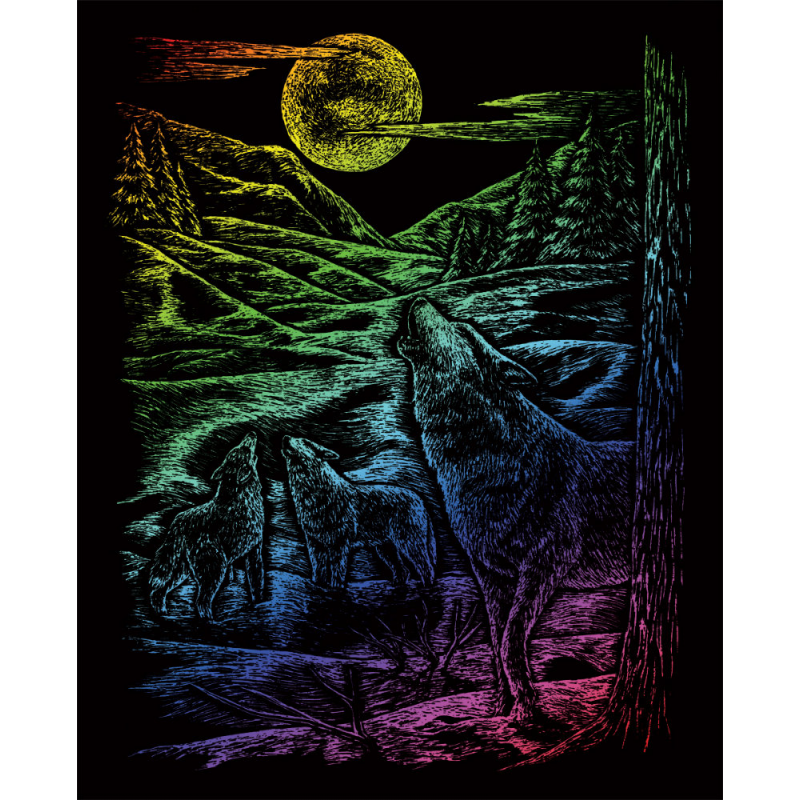 - Setul gravura pe folie curcubeu Lup urland contine :