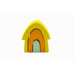 Conține 3 piese, de culori și dimensiuni diferite. Căsuța mare are 11 x 10 x 4 cm.