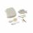 Set de igiena intr-o cutie de toaleta. Include o perie, pieptene, periuta de dinti, foarfece cu varf rotunjit, taietor de unghii, patru pile de unghii si un termometru.