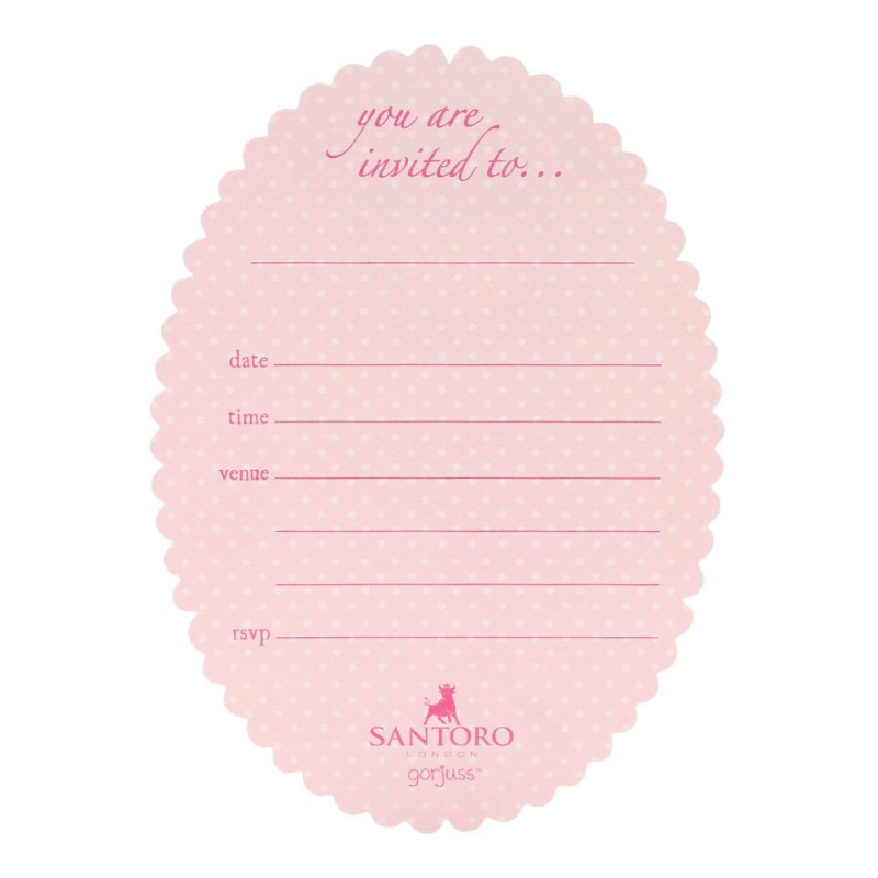 Setul de invitatii Gorjuss avand pe fiecare felicitare inscriptionate fetitele Gorjuss, Sweet Cake, The Hatter, Sweet Tea, Alice este setul ideal pentru orice petrecere cu stil. Setul contine 8 invitatii tiparite pe hartie superioara, avand fiecare cate un plic deosebit.