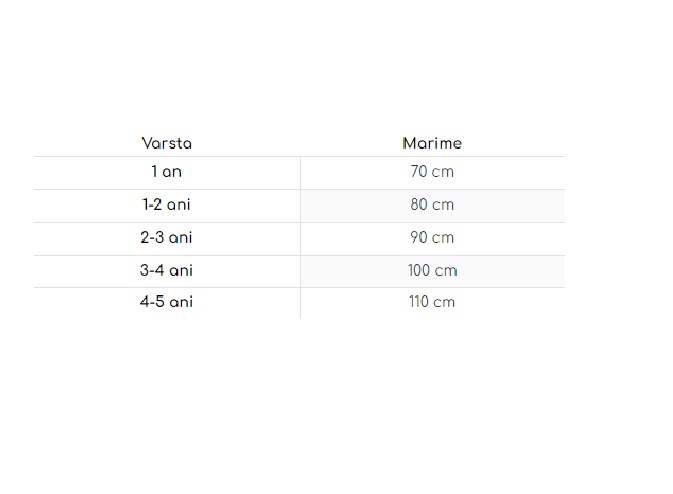 Marime: RECOMANDAM o marime mai mica decat cea pe care o poarta copilul dumneavoastra in mod obisnuit!