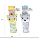 O bratara este decorata cu o koala, iar cealalta cu un raton, acest adorabil duo poate fi folosit impreuna sau separat, alegand care bebelus de zornaitori este cel mai interesat in acest moment.