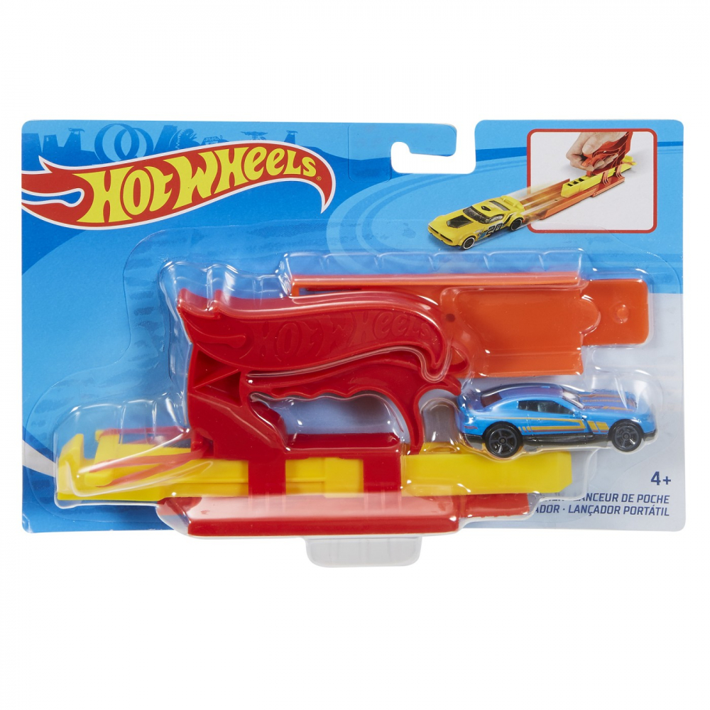 Setul contine un lansator manual pentru pornirea masinutei si o masinuta cu un logotip.