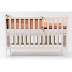 - Protectie patut (bumper): 200 cm lungime, 25 cm inaltime, umplutura 25% poliuretan si 75% poliester, husa 100% bumbac – ideala pentru a proteja bebelusul impotriva loviturilor in timpul somnului.