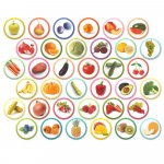 Acest set include 36 de elemente magnetice viu colorate, fiecare reprezentand un fruct, leguma sau fructe de padure, cum ar fi dovleacul, marul, perele, caisele, varza, prunele, dovleceii, si multe altele