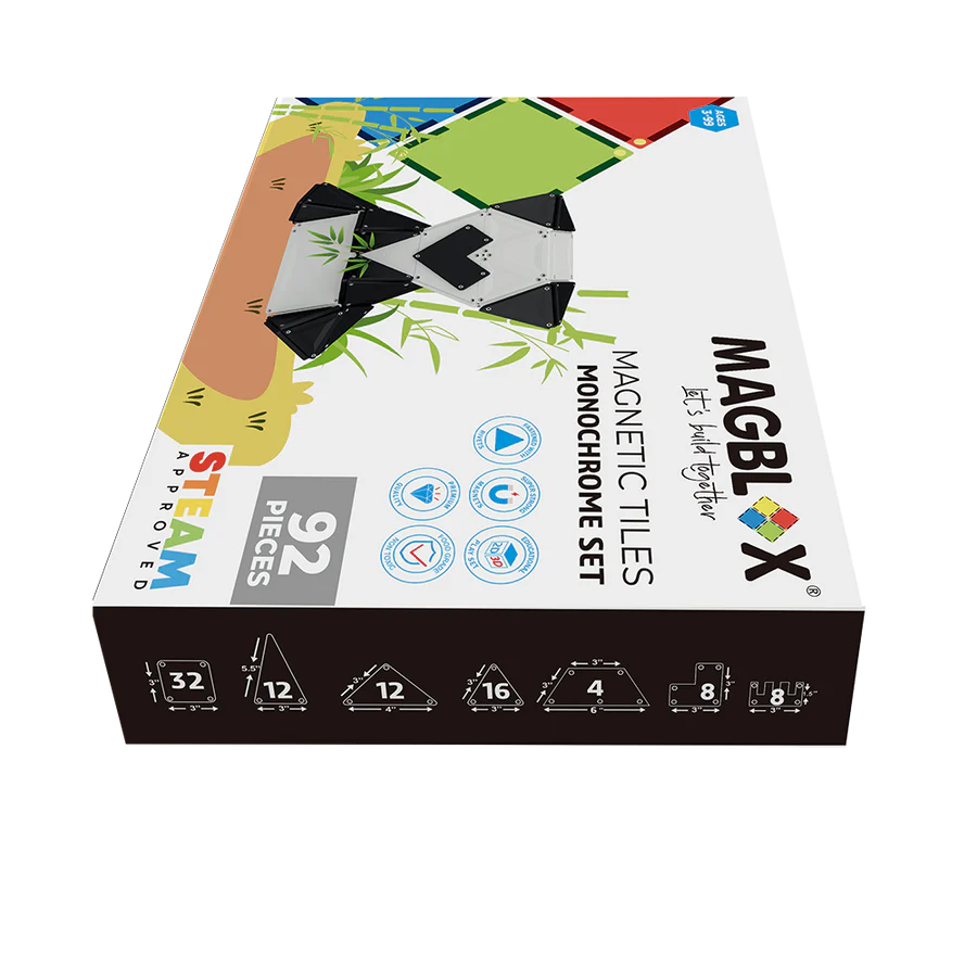 Setul Magblox Magnetic Tiles Monochrome promovează incluziunea și accesibilitatea, oferind copiilor și adulților o opțiune atractivă și minimalistă.