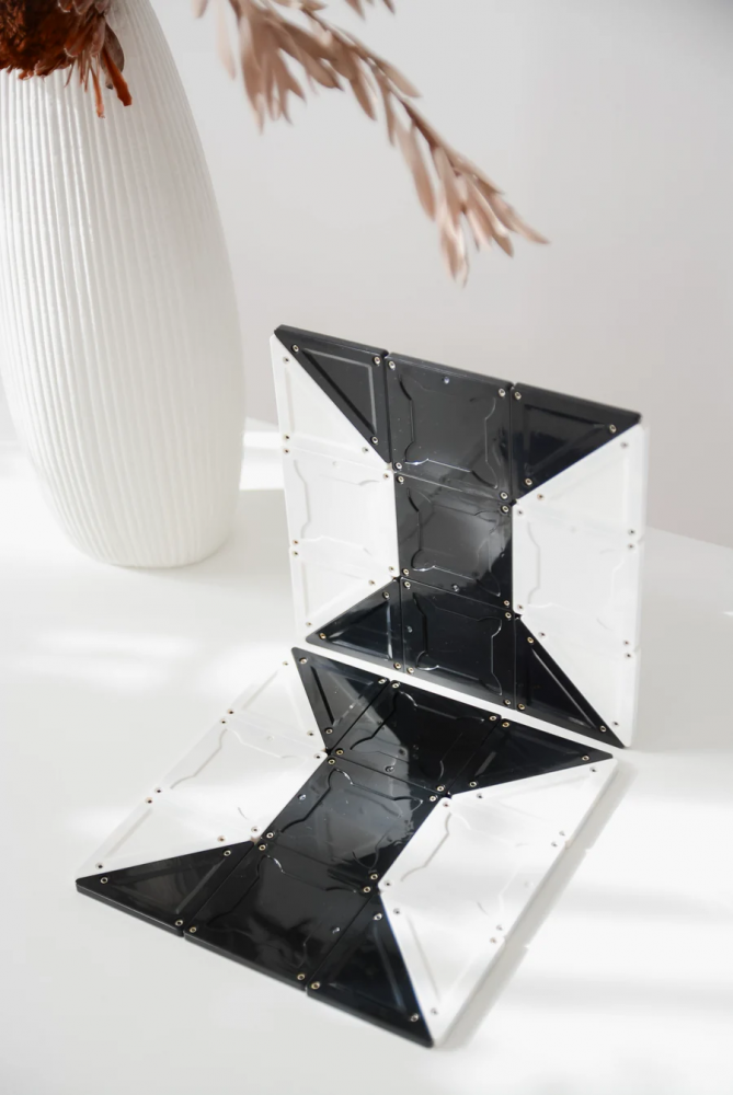 Setul conține toate lucrurile care ne plac la Magblox, realizat din plastic ABS reciclat, magneți puternici, nituri argintate și simetrie perfectă a triunghiurilor isoscele.