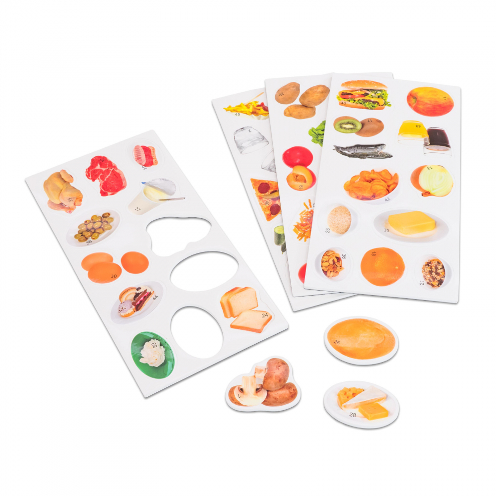 Setul este format din piramida cu 9 piese și setul de 48 de piese cu imagini cu alimente. Alimentația sănătoasă este importantă