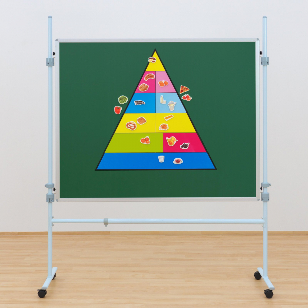 Piramida alimentară magnetică poate fi atașată în mod ideal la tablă pentru ca toți elevii să o vadă.