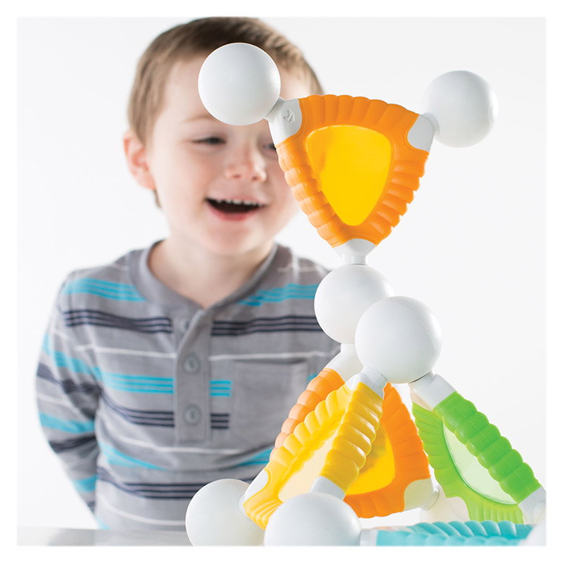 - Piesele tactile, placute la atingere, sunt sigure si usor de apucat si tinut in mana de catre copiii micuti, in timp ce acestia isi exerseaza abilitatile de constructie.