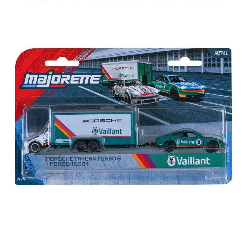 Set Majorette transporter remorca de curse deluxe Porsche Taycan turbo s si masinuta Porsche 934
