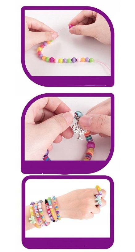 * Cu acest set, copilul tau poate crea nenumarate bratari, fiecare dintre ele fiind o reflectare unica a personalitatii sale.
