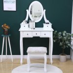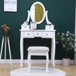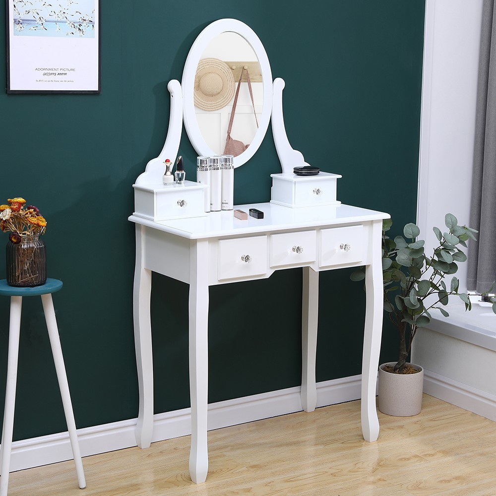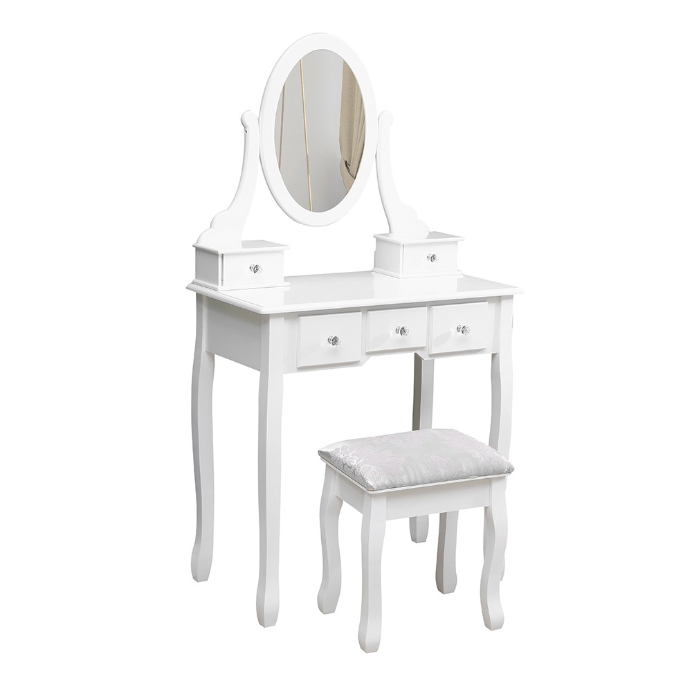 Set masa de toaleta 140x80x40 cm, oglinda si scaun incluse, 5 sertare