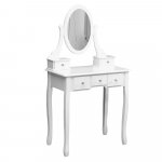 Cu un design modern si contemporan, masa este prevazuta cu o oglinda reglabila si un suport detasabil, astfel incat masa poate fi folosita si ca un simplu birou. Masa este formata din 5 sertare care permite pastrarea bijuteriile si produsele cosmetice ordonate.