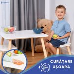 Acest set masă și scaune copii este ușor de curățat, menținându-și aspectul ca nou chiar și după utilizări intense. Copiii își pot explora creativitatea fără ca părinții să își facă griji de pete sau urme după joacă!