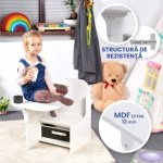 Set masuta cu scaun incorporat pentru copii 3 in 1 din lemn Mdf 3-6 ani alb-gri