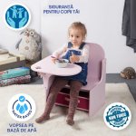* Spatiu pentru depozitare - In sertarul pe care il integreaza pot fi depozitate jucarii sau rechizite.