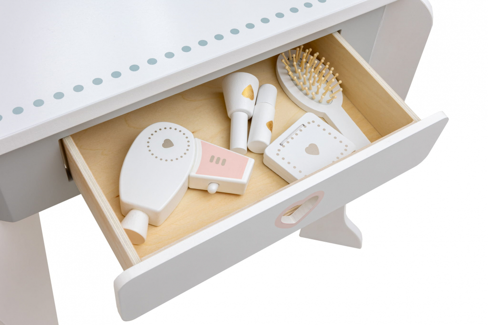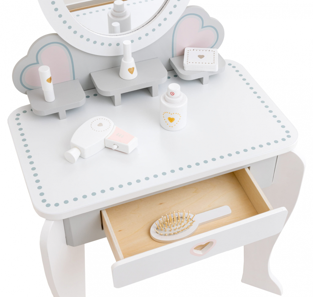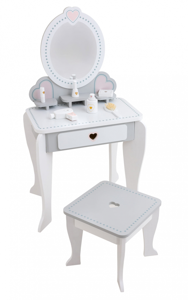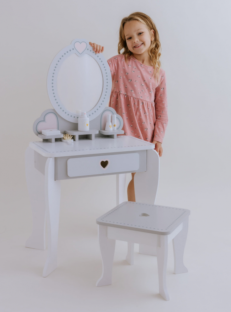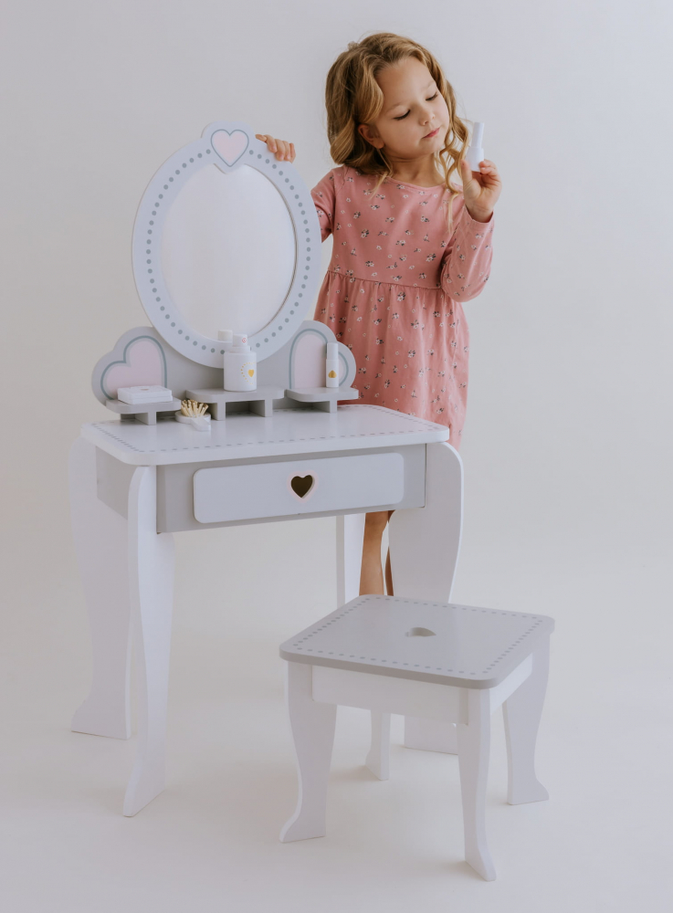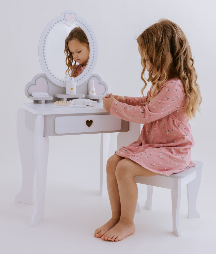 O masa de toaleta din lemn permite fetitelor sa imite adultii si le invata cum sa aiba grija de frumusetea lor.