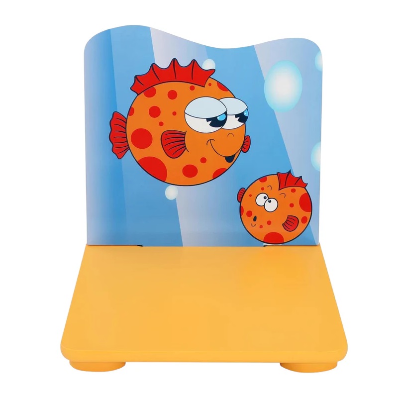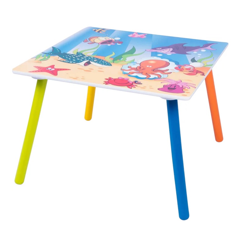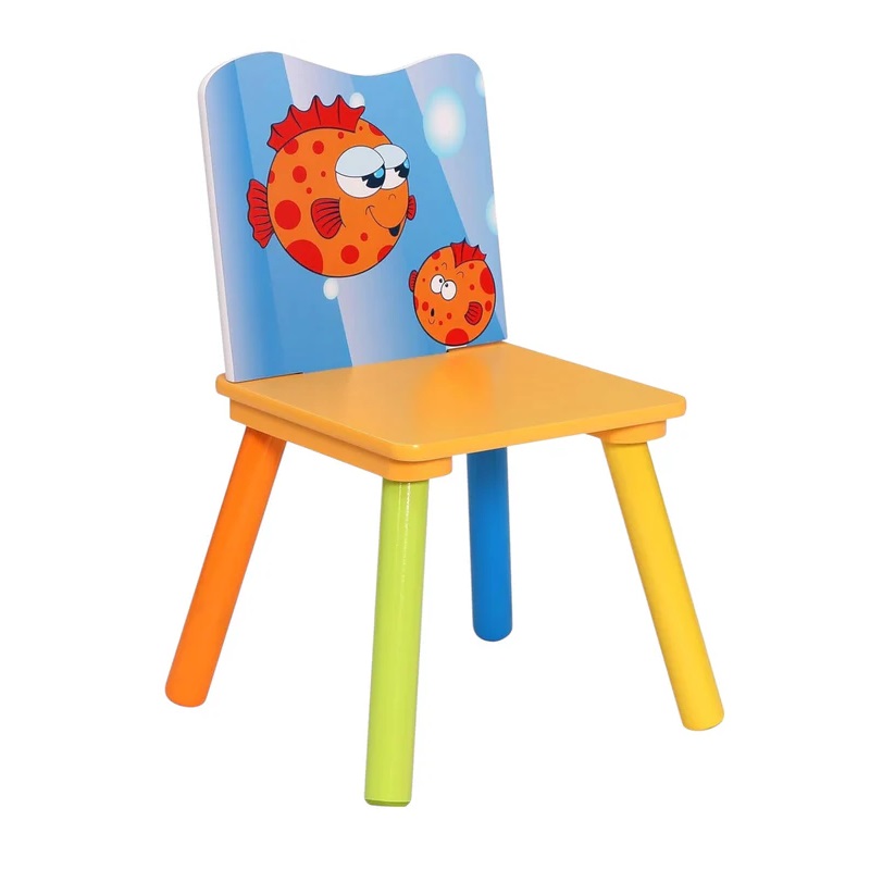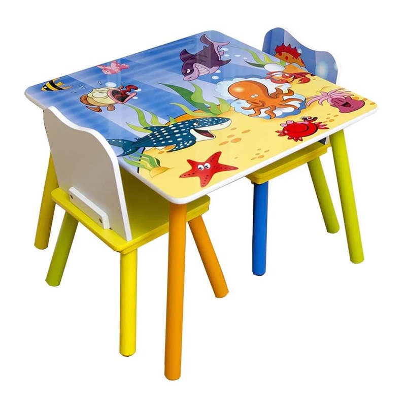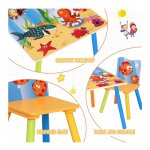 Set masuta si 2 scaunele cu spatar pentru copii Ginger Home Ocean Animals din lemn, Margini rotunjite,potrivit pentru activitati/teme,gradinita,after school,greutate suportata 40kg