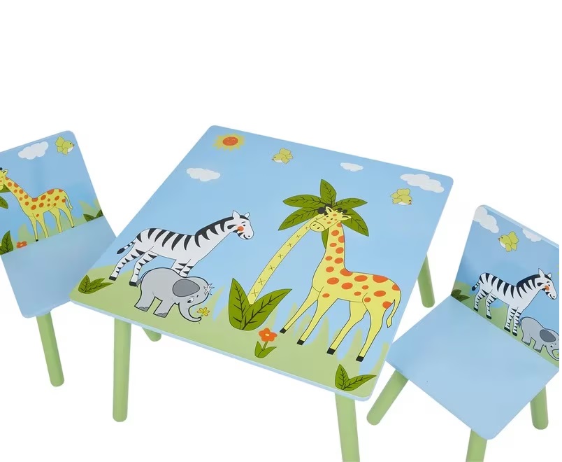 - Masa si scaunele pentru copii au picioare din lemn masiv care sunt concepute pentru a fi puternice si rezistente la impact, asigurand siguranta copilului dumneavoastra chiar si atunci cand sta nelinistit.