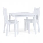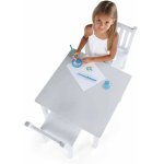 Set masuta si 2 scaunele cu spatar pentru copii Ginger Home White din lemn, margini rotunjite,potrivit pentru activitati/teme,gradinita,after school,greutate suportata 40kg