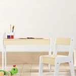 Set masuta tip birou cu scaunel din lemn Ginger Home pentru scris/desenat Alb/Galben
