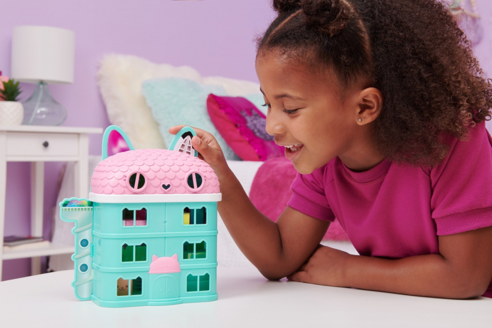 Înalta de doar 20,3 cm., aceasta mini casa de papusi portabila, cu doua etaje, se deschide dezvaluind doua zone in care tu si Gabby Girl puteti juca scene de aventura inspirate din serial.