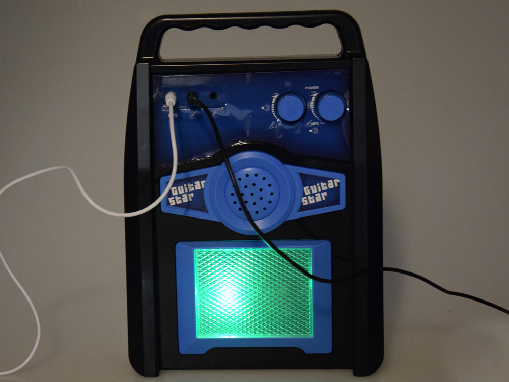 Amplificator cu intrari pentru chitara, microfon si dispozitive MP3 - permite redarea melodiilor de acompaniament din surse externe.