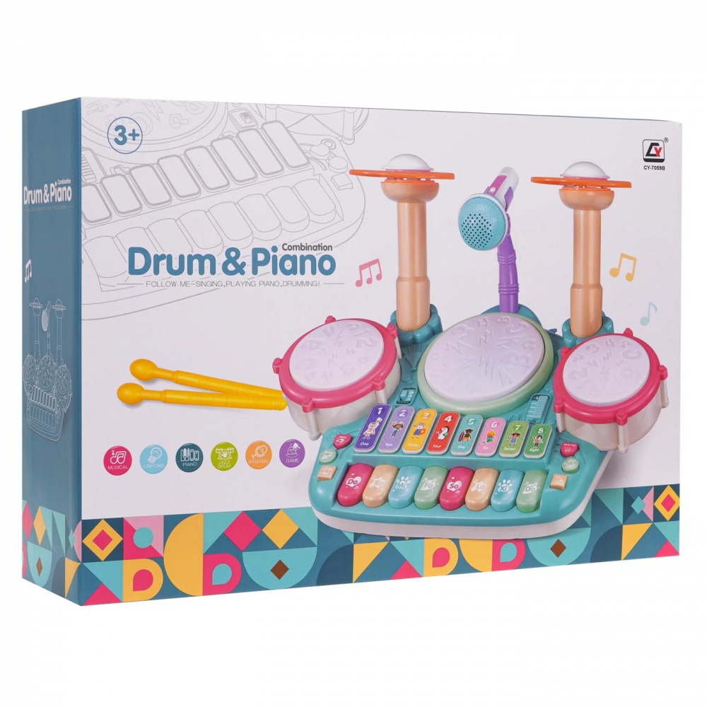 Set muzical pentru copii Toba Pian si Microfon 43 cm multicolor