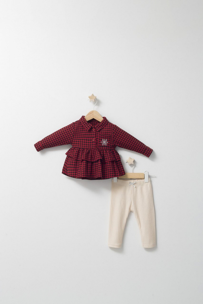 Set pantalonasi si camasuta in carouri Tongs baby Ballon Rosu 18-24 Luni