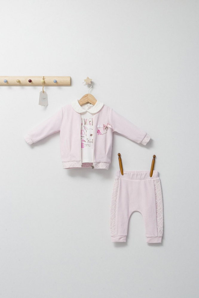 Set pantaloni cu bluzita si hainuta Tongs baby Gazelle Roz 12-18 Luni