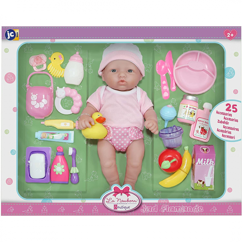 Setul nostru cuprinde: o papusa nou nascut de 30 cm si 25 accesorii pentru ingrijirea zilnica, oferind oportunitatea de a deprinde rutina zilnica de ingrijire dar si momente distractive de joaca.