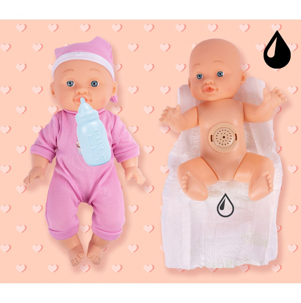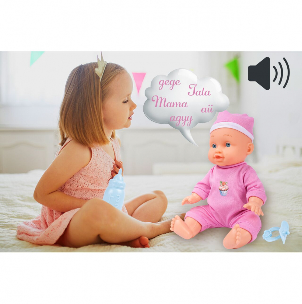 Papusica bebe poate rosti cuvinte, precum: mama, tata, poate plange si gangureste, asemenea bebelusilor reali.