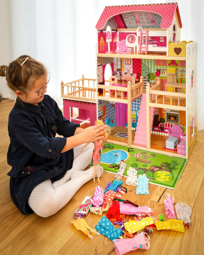 * Frumoasele rochite incluse in set vor permite fetitelor sa dezvolte jocurile de rol, se pot pune in pielea designerilor de moda, si pot realiza tinute unice, specifice podiumului catwalk.