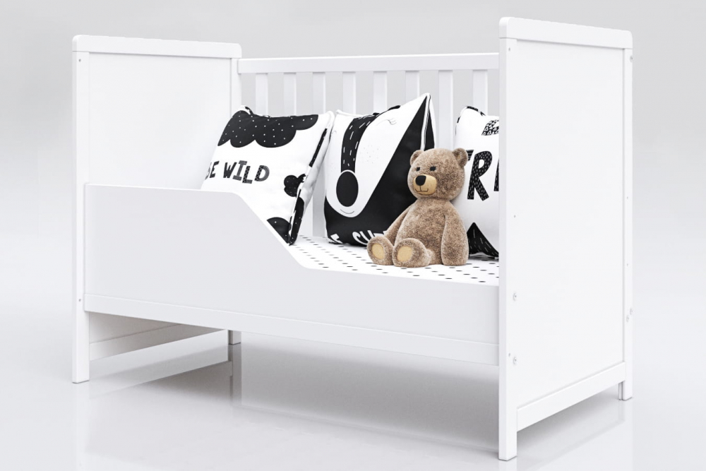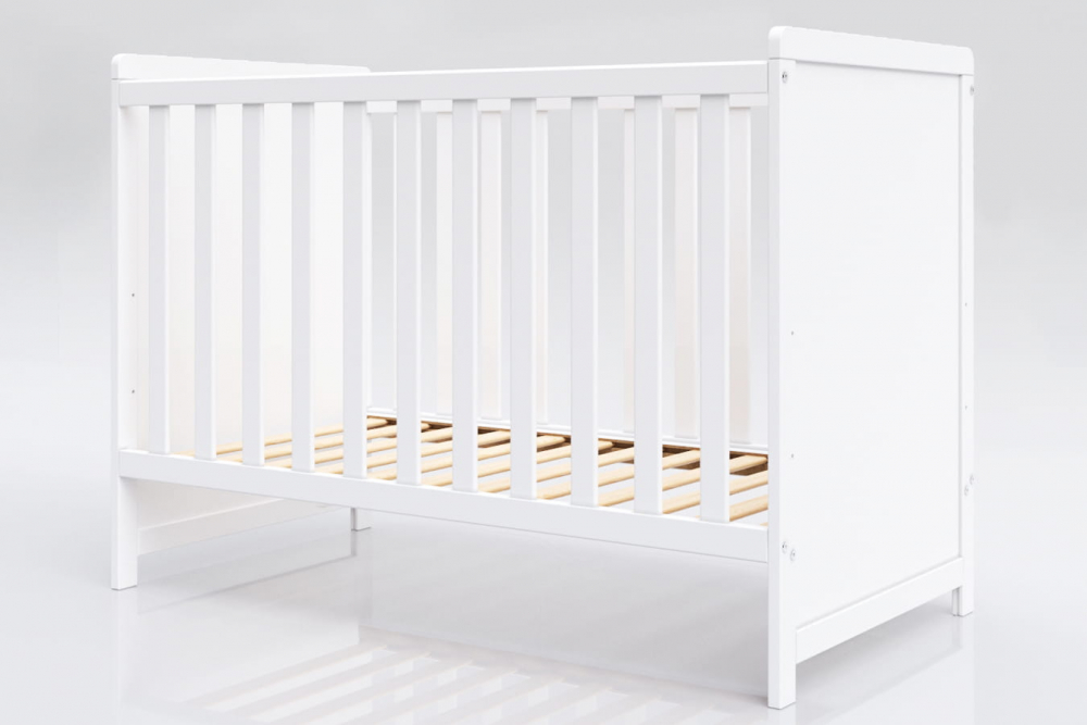 Set Patut din lemn 120x60 cm Nichiduta Lilia White cu margini rotunjite si somiera reglabila + Saltea cu husa detasabila din microfibra 12 cm grosime Nichiduta Cocos Comfort +