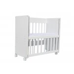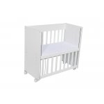 Set Patut din lemn Nichiduta Mini Cot White cu laterala culisanta,somiera reglabila pe 4 nivele de inaltime,Roti cu blocare si Margini rotunjite + Saltea Sensillo spuma-cocos 7cm cu husa din tesatura cu Aloe Vera