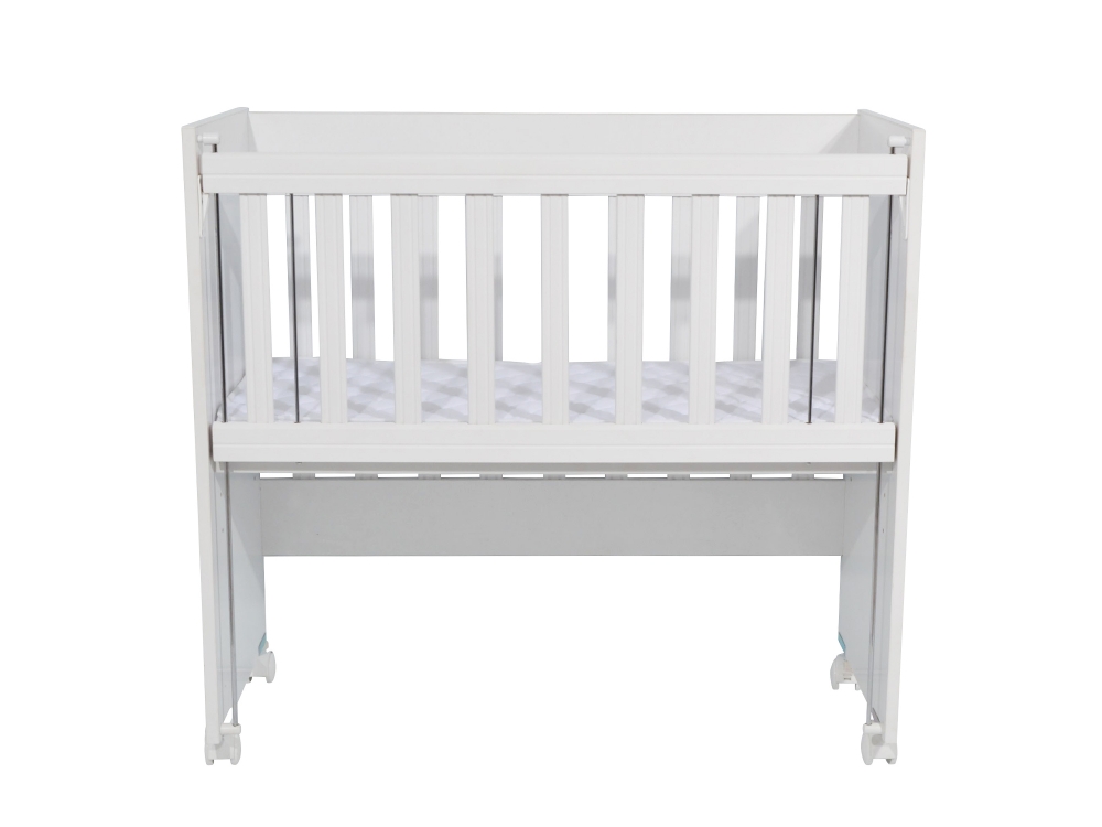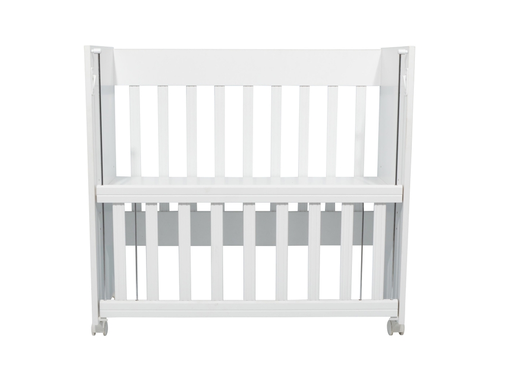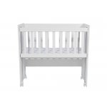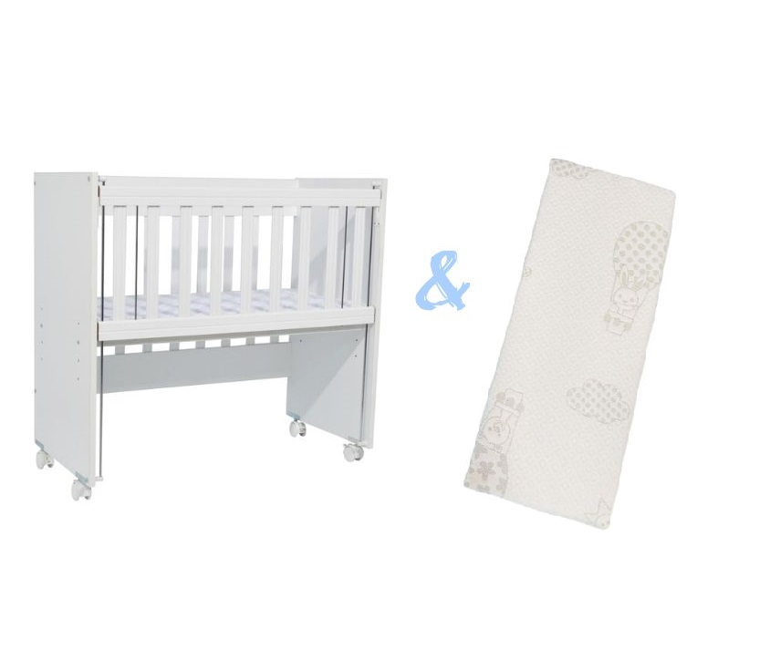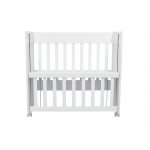 Set Patut din lemn Nichiduta Mini Cot White cu laterala culisanta,somiera reglabila pe 4 nivele de inaltime,Roti cu blocare si Margini rotunjite + Saltea cocos-burete cu detasabila cu fermoar Dreamillo Bunny 90x40 cm