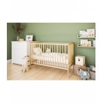 Set Patut din lemn pana la 4 ani cu somiera reglabila pe 3 nivele de inaltime Nichiduta 120x60 cm Grace Natur + Saltea cu husa detasabila din microfibra 10 cm grosime Nichiduta Cocos Comfort +