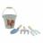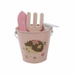 Setul contine o galetusa imprimata cu un model simpatic cu arici, o lopetica, o mini furca si o grebla, adaptate perfect pentru manutele celor mici, usor de folosit, sigure si durabile.