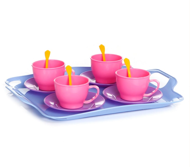 * Jocul cu serviciul de cafea stimulează și imaginația, încurajează gândirea creativă și neconvențională și, de asemenea, dezvoltă abilitățile manuale.